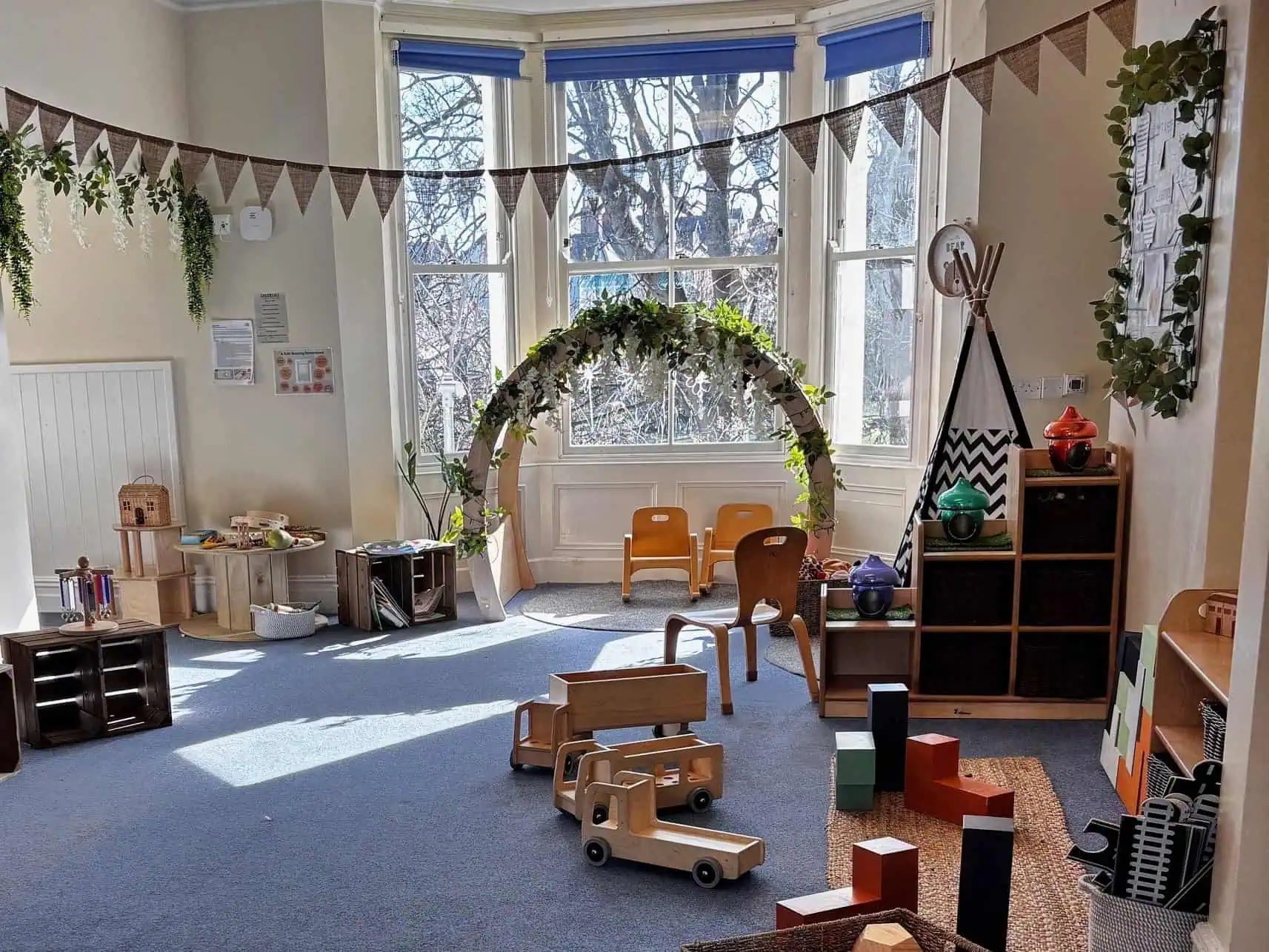 Our warm and welcoming nursery is spread across three floors, with dedicated Baby and Toddler rooms and a Sensory Room on the ground floor, a Nursery room on the first floor, and a vibrant Preschool room on the top floor.